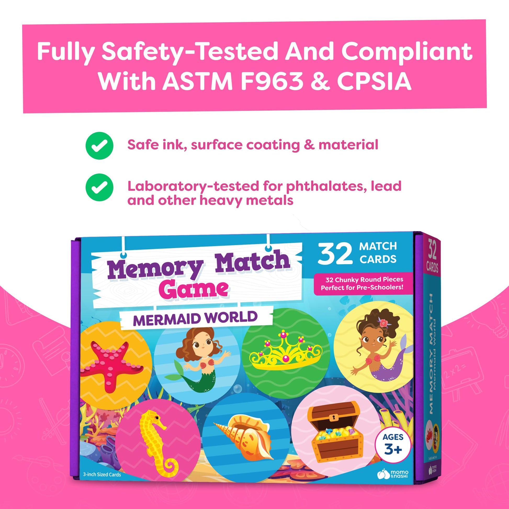 Mermaid Toys for Girls 4-6 Matching Game - Memory Game for Kids - Girls Toys 4-5 - Mermaid Gifts - 4 Year Old Girl Birthday Gifts - Kids Games Preschool Educational Toys