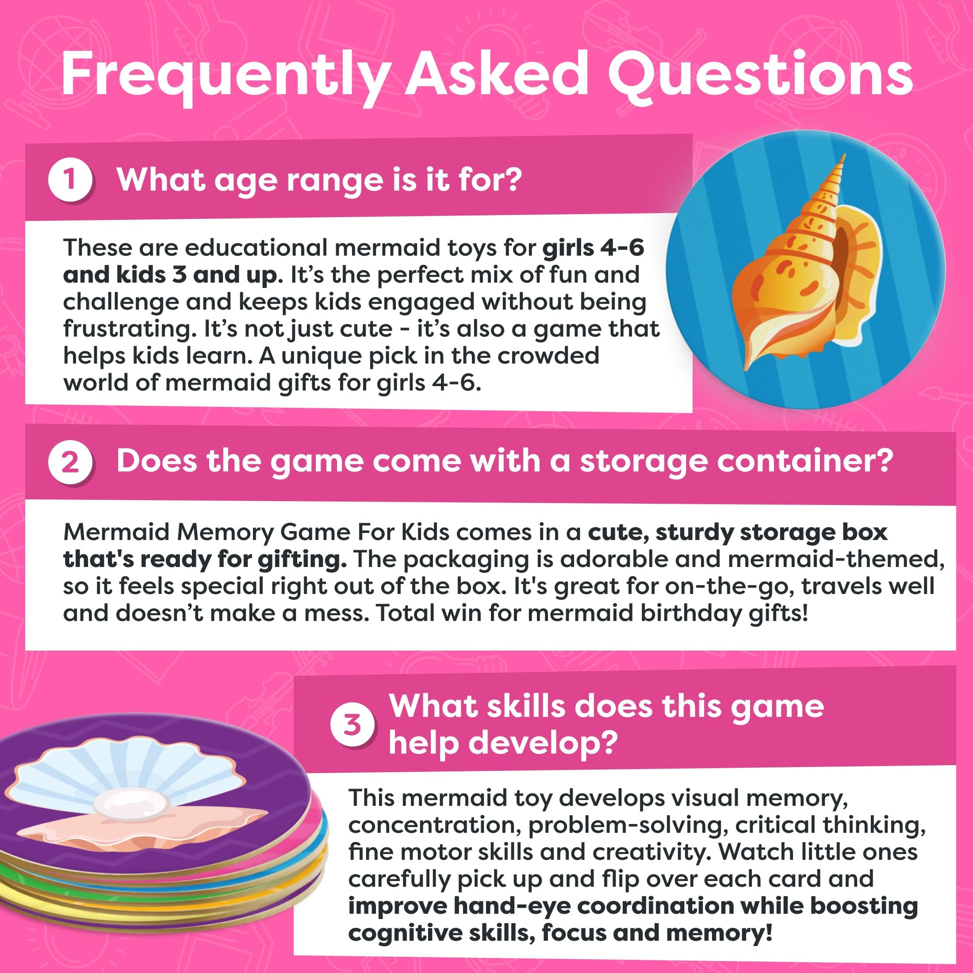 - Fun, Hands-On Learning Gift for Kids. 32-Piece Little Mermaid Toys For Girls 4-6 Matching Game For Kids. Super fun & easy-to-learn mermaid games gift for birthdays, Christmas, Easter & other holidays. Entertain & challenge toddlers with classic Girls Toys 4-5 Matching Games that associate learning with fun & set them down the road to being lifelong learners.
